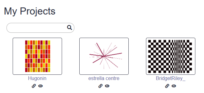Cada proyecto tiene unos iconos justo debajo de él, que informan de si está compartido (es decir, si podemos compartirlo mediante el enlace) y de si es público (es decir, si puede ser encontrado mediante navegación dentro de la web de Snap!).
