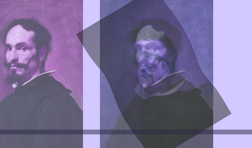 En este ejemplo guiado trabajaremos con nueve fotografías de retratos de Velázquez. Empezaremos modificando las dimensiones del escenario en Snap!, haciéndolo de 850 x 500 píxeles. Vamos a poner todas las fotografías como vestidos de un personaje, habiéndolas redimensionado previamente para que coincidan con la altura del escenario: 500 píxeles.